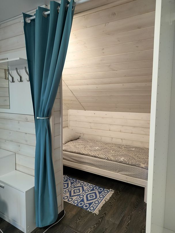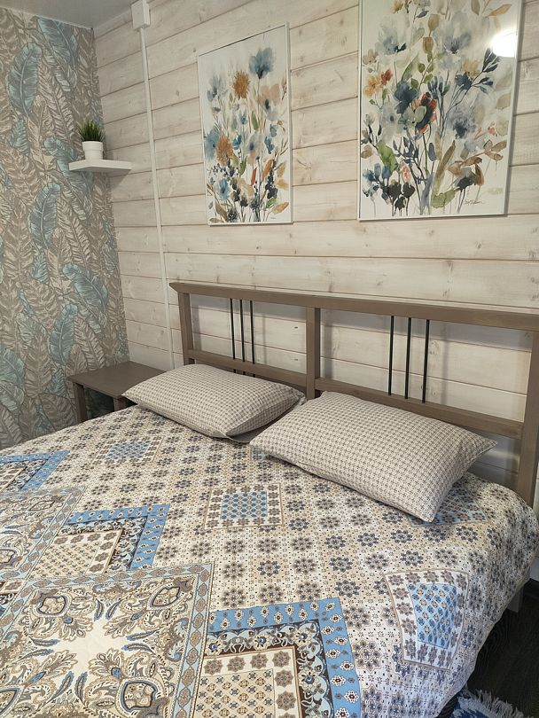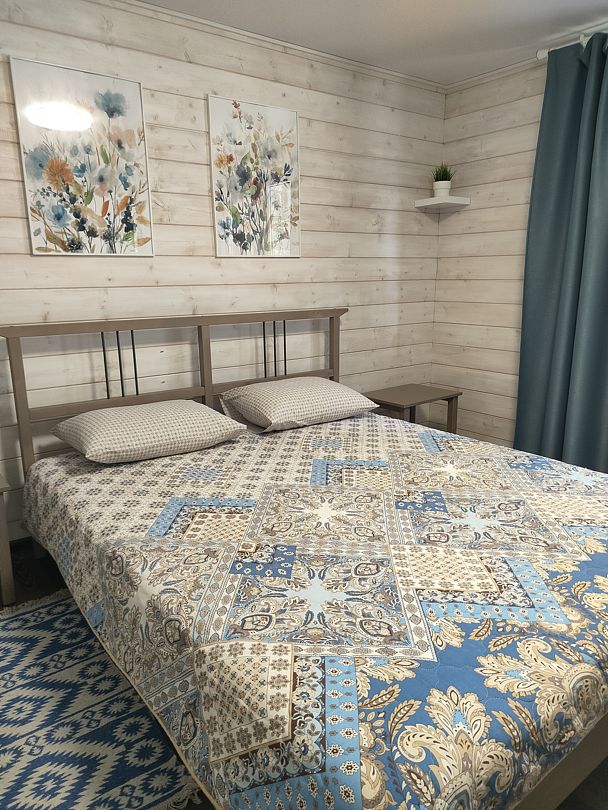 Две кровати (увеличенная 2-х спальная кровать + стандартная односпальная кровать), отличные матрасы, теплые одеяла, мягкие подушки, качественное постельное белье, полотенца для лица и тела, шкаф, сушка для одежды, столик, тумба, обувница, вешалка на входе, санузел (WC + раковина, душевая кабина).