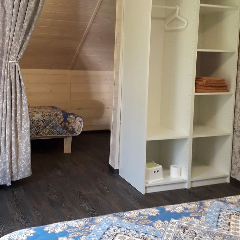 Две кровати (2-х спальная и односпальная), теплые одеяла, мягкие подушки, качественное постельное белье, полотенца для лица и тела, шкаф, сушка для одежды, стол, вешалка на входе, санузел (WC + раковина).