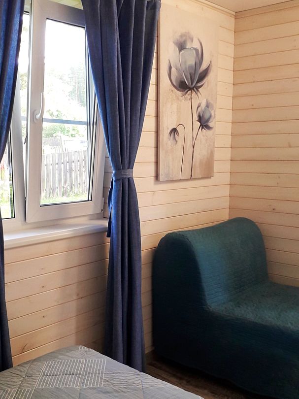 Одна кровать 2-х спальная и кресло-кровать как дополнительное место для ребёнка, теплые одеяла, мягкие подушки, качественное постельное белье, полотенца для лица и тела, шкаф, сушка для одежды, стол, вешалка на входе, санузел (WC + раковина, душевая кабина).