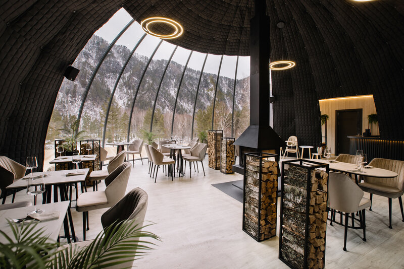 Панорамный купольный ресторан европейской кухни с локальными блюдами от шеф-повара.