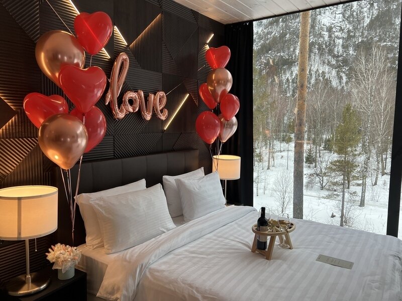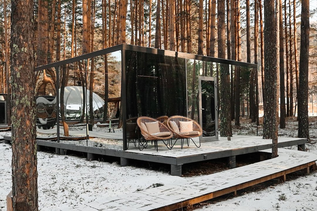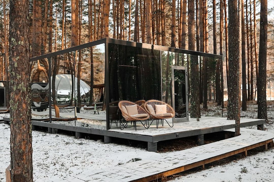 Уютный Зеркальный дом* с панорамным видом для полного единения с природой. Комфортный номер со всем необходимым на двоих для атмосферного отдыха среди леса. Идеально подходит для романтических вечеров вдвоем или семьи с маленьким ребенком.