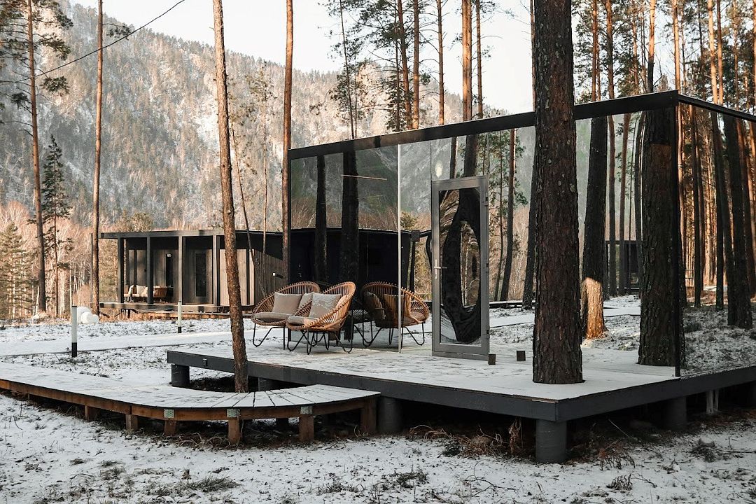 У каждого зеркального дома — собственная терраса с дизайнерской мебелью. Особенность номера - проектор с экраном и панорамное остекление в пол. В проживание включены завтраки “Шведский стол”.