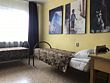 Трехместный стандарт номер расположен на втором этаже гостевого дома. Общая площадь 20 кв. метров. В комнате три кованные кровати, белое белье, полотенца. Тумбочка и полки для одежды, стол, туалет и ванная. Стены украшены картинами американской художницы К. Хилтон.
