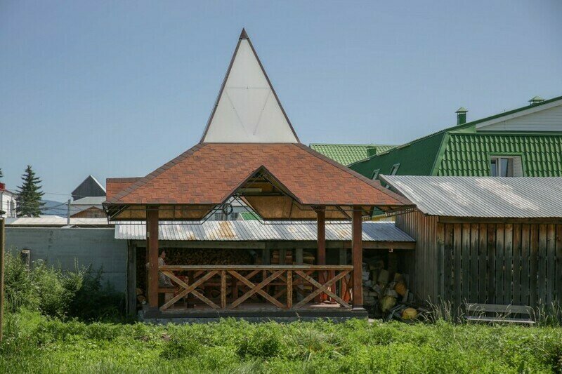 Кухня и баня находятся недалеко от кедрового дома. Во дворе также имеются пять уличных туалетов и пять раковин с холодной водой.