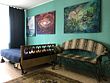 Двухместный номер расположен на первом этаже гостевого дома. В комнате две кедровые кровати, белое белье, полотенца. Тумбочка и полки для одежды, стол. Туалет, душ — на этаже. Стены украшены картинами американской художницы К. Хилтон. Можно воспользоваться общей кухней или заказать питание.