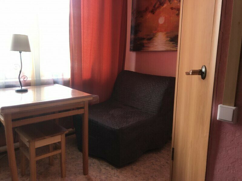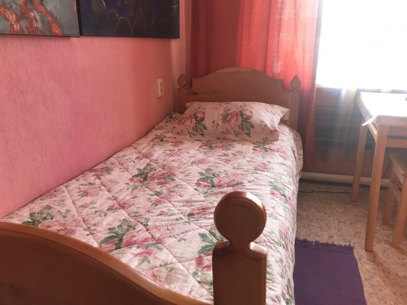 Одноместный номер эконом-класса расположен на цокольном этаже гостевого дома. В комнате кедровая кровать, белое белье, полотенце. Полки для одежды, стол, кедровый стул - кресло. Туалет, душ — на этаже. В комнате небольшое окно. Вид из окна на территорию гостевого дома. Стены украшены картинами американской художницы К. Хилтон. Можно воспользоваться общей кухней или заказать питание