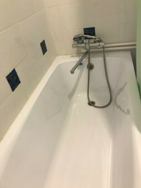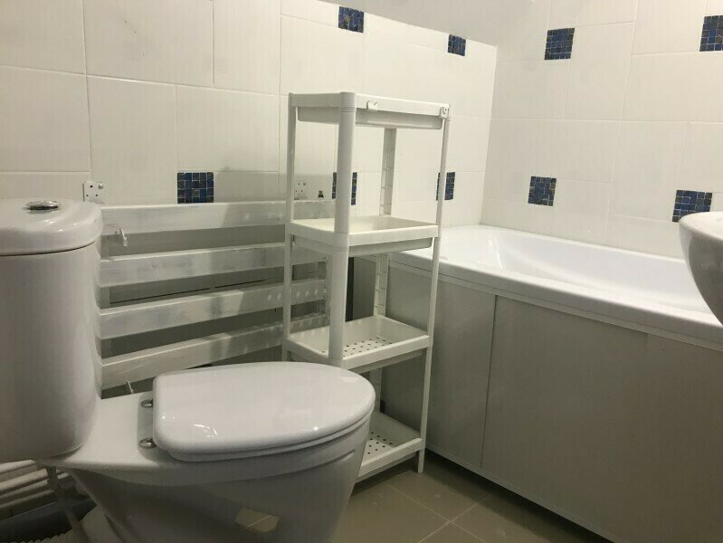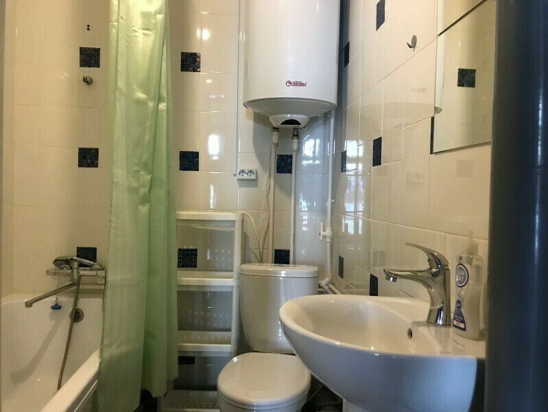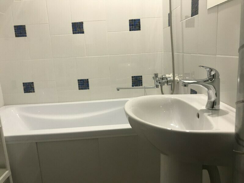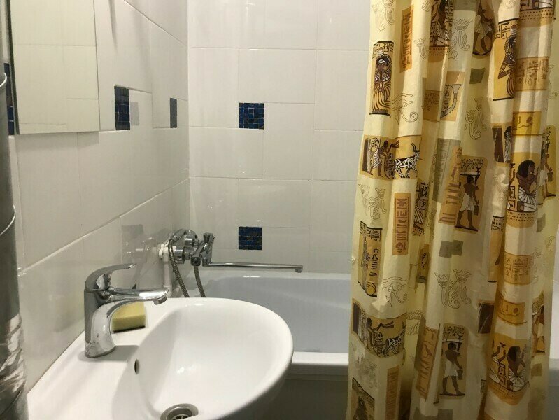 В номере ванна, раковина и унитаз. Санузел отделан кафельной плиткой.