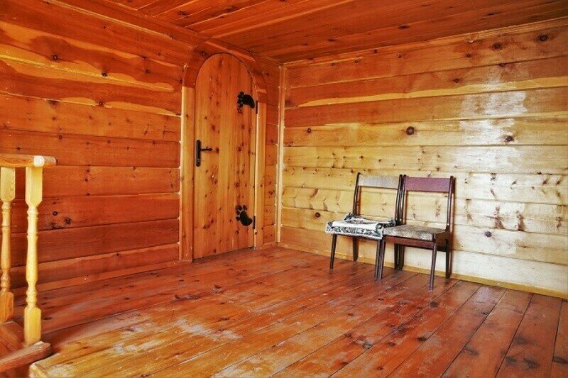 Деревянный пол из соснового массива. Имеются две кедровые односпальные кровати, которые можно соединить в одну двуспальную кровать. Одна двухъярусная кровать - трансформер на два односпальных места.