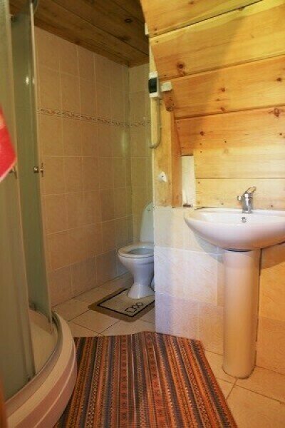 Кухня и баня находятся недалеко от кедрового дома. Баня за дополнительную плату. Во дворе также имеются пять уличных туалетов и пять раковин с холодной водой.