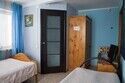 Трехместный номер класса эконом расположен на втором этаже гостевого дома. В комнате три кедровые кровати, белое белье, полотенца. Тумбочка и полки для одежды, стол. Туалет рядом с комнатой. В других комнатах на этаже есть свои туалеты. Душ на первом этаже. Стены украшены картинами американской художницы К. Хилтон. Можно воспользоваться общей кухней или заказать питание.