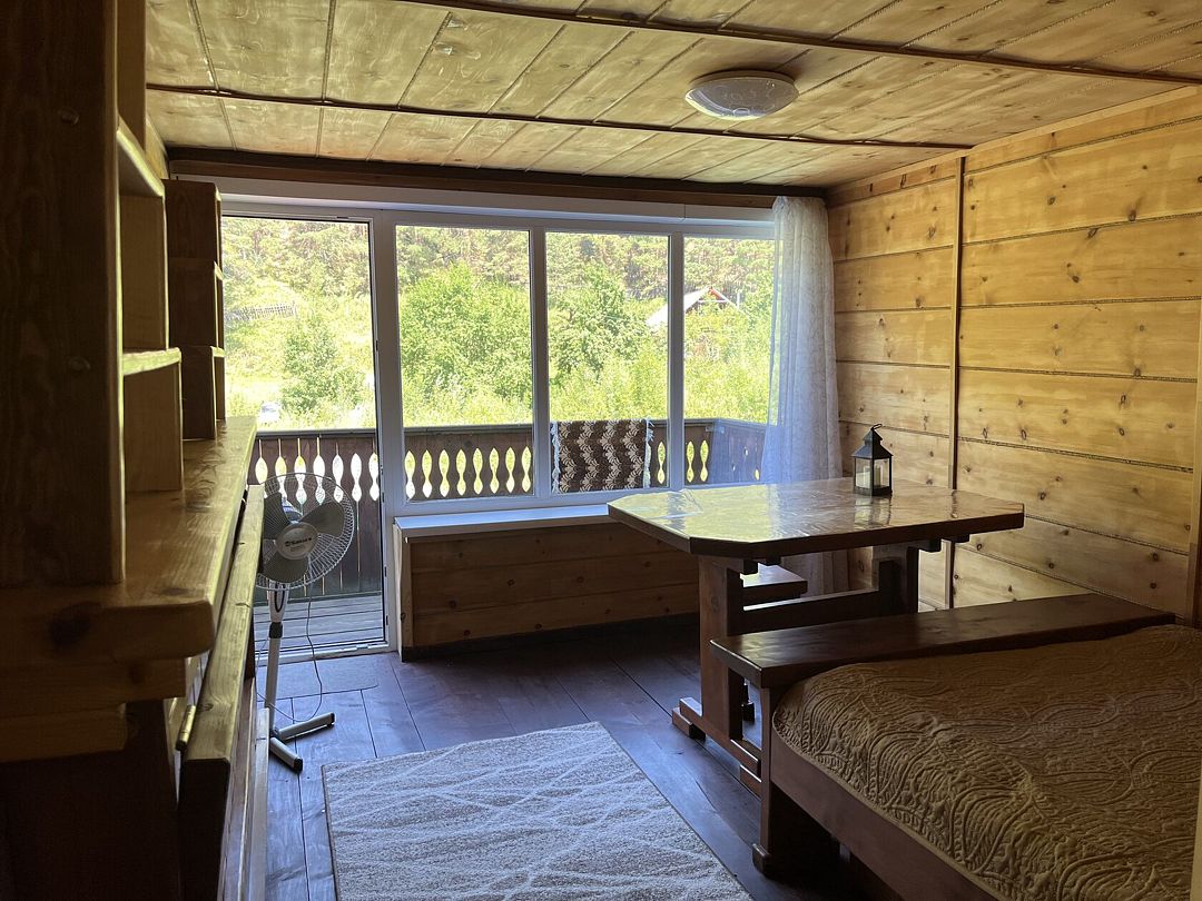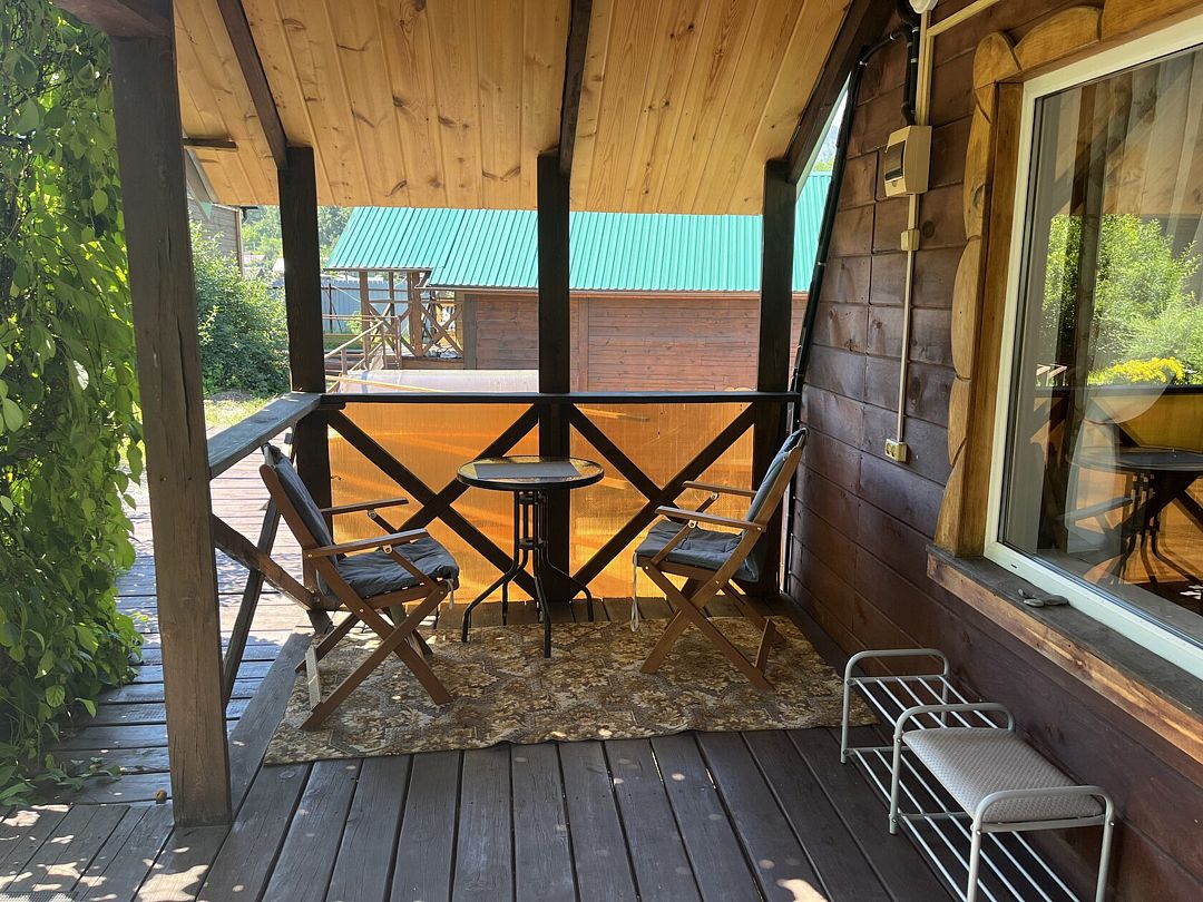 Терраса с видом на реку, своя мини-кухня. Санузел в номере.