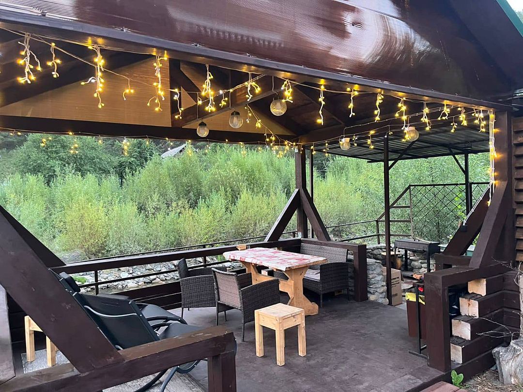 С камином, видом на реку и уютной беседкой с креслами. Дрова предоставляются.
