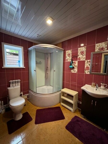 Кухня оборудована холодильником, плитой с духовкой, есть чайник, посуда, мультиварка. В доме два выхода раздельных на террасы. Благоустроенный санузел и душевая.