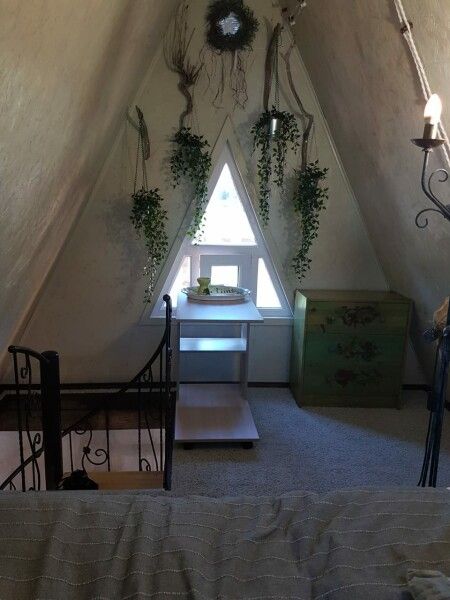 Одна двуспальная кровать, две диван-кроватиВ а-фрейме
