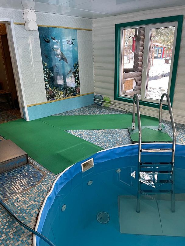 Для маленьких гостей был создан отдельный круглый бассейн, соседствующий со взрослым. Его безопасная глубина позволяет детям беззаботно наслаждаться водными играми, чувствуя себя в полной безопасности.