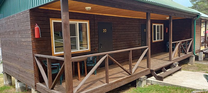 4 полотенца (2 больших, 2 маленьких). Туалетная комната: душевая кабина, мыло. У домиков данной категории нет веранды и своего мангала.