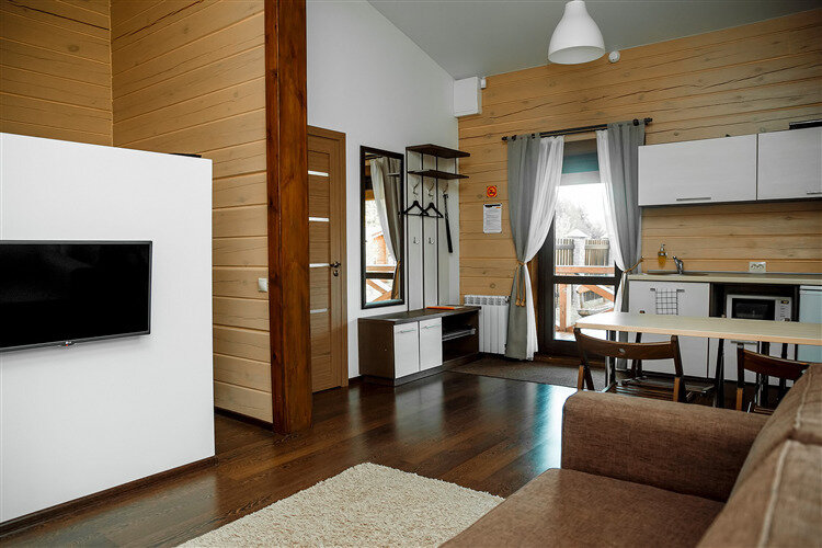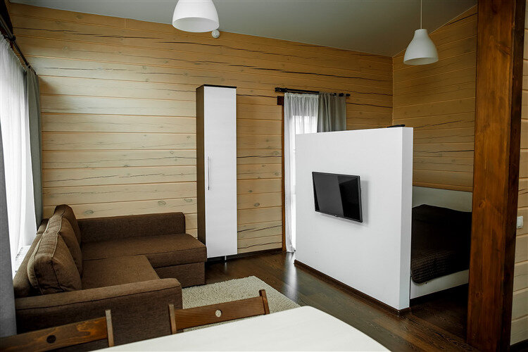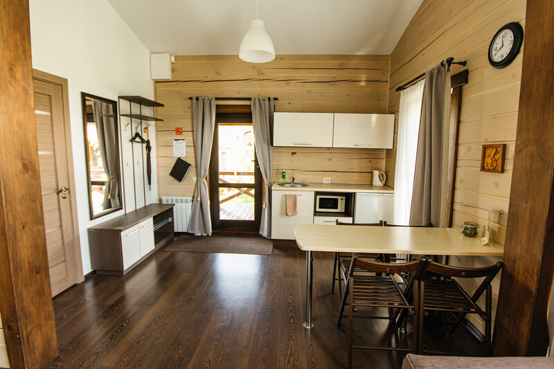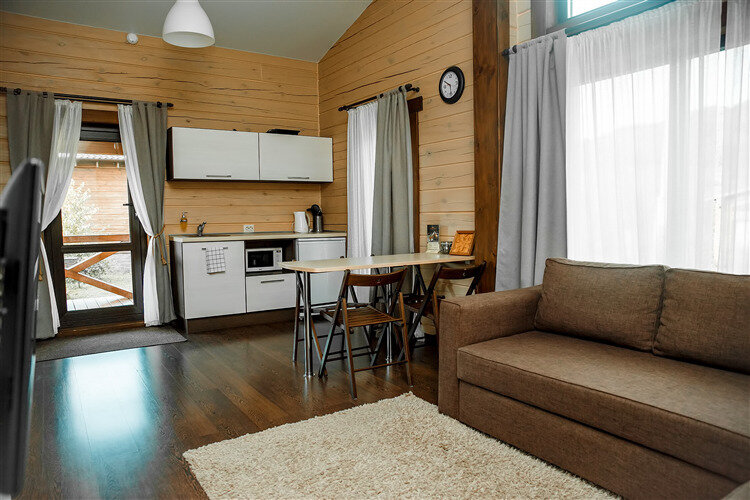 Парк-отель функционирует круглый год и предлагает 15 отдельных домиков-студий, каждый из которых имеет уютную террасу и собственную мангальную зону. Домики оборудованы всем необходимым, для того, чтобы проживание было комфортным.