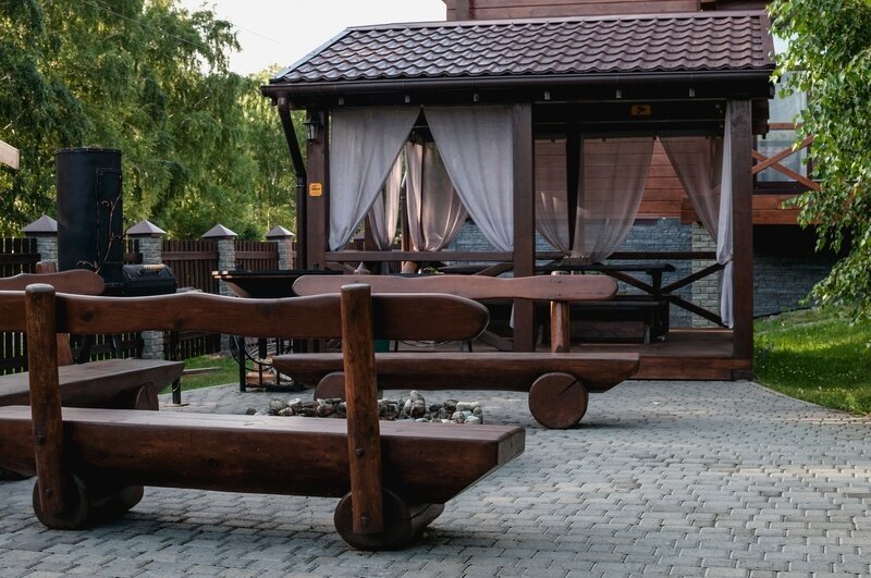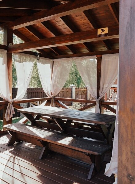 Для больших дружных компаний на территории имеются уютные крытые беседки с мангальной зоной и костровищем, которые предоставляются бесплатно.