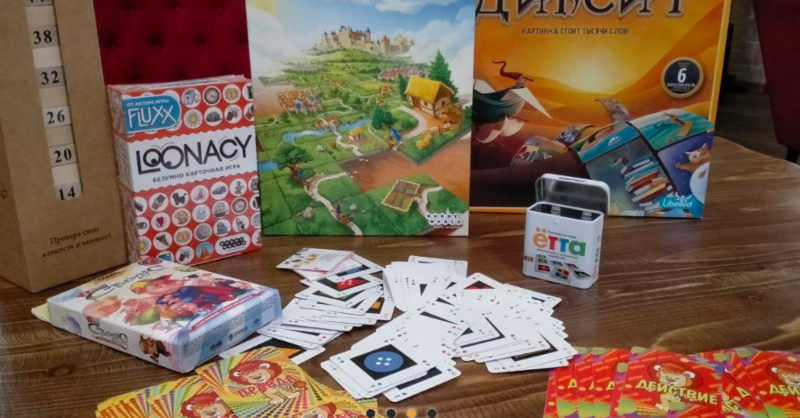 Развлекательные настольные игры (Каркассон, Башня, Диксит, Loonacy, Ётта, Свинтус).