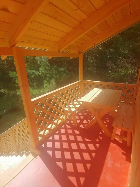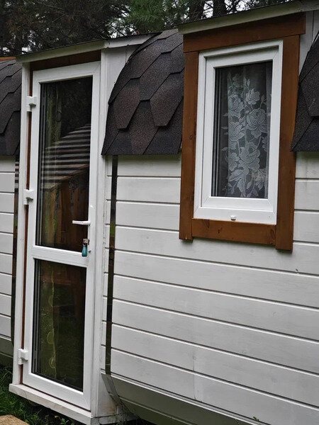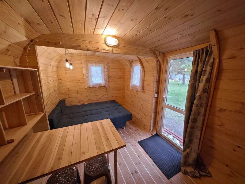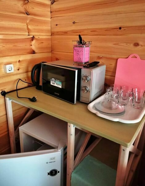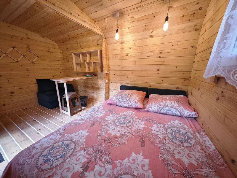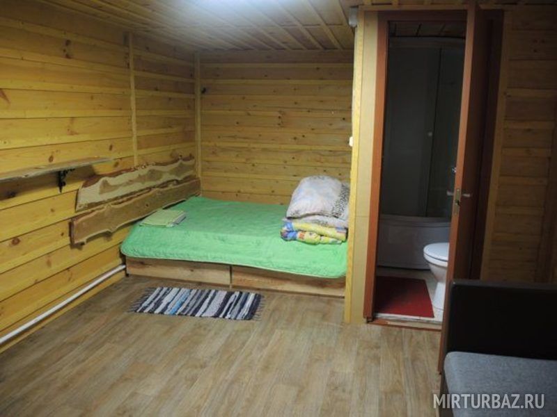 Летние домики с террасой, 1-комнатные, в номере 1 шт 2-спальная кровать, либо 3 шт 1-спальные кровати, либо 2 шт 1-спальные кровати и диван, тумбочка, шкаф, WC, раковина, душ. В тёплый период приготовить можно в летней кухне, оборудованной бытовой техникой и посудой, либо заказать. Бесплатный Wi-Fi.