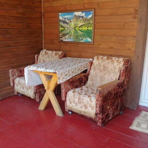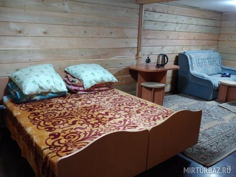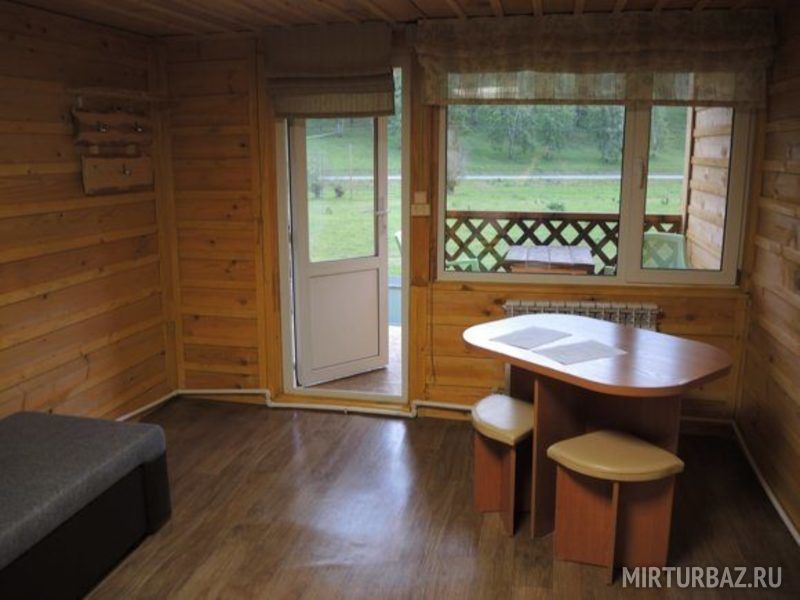 Комфортные номера на мансардном этаже брусового дома с видом на горы, 1 комнатные, в номере двуспальная кровать, диван (размер варьируется), стол, стулья, чайник, мини-холодильник, телевизор, отопление, отдельный вход, мебель на улице, в ванной комнате душевая кабина