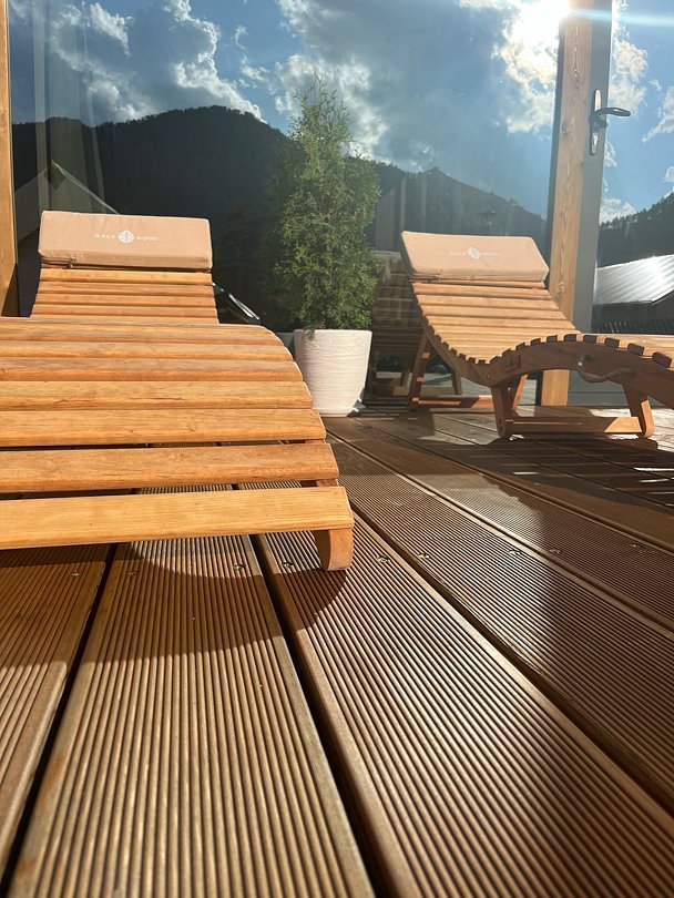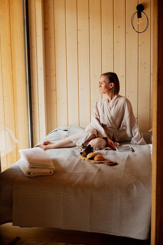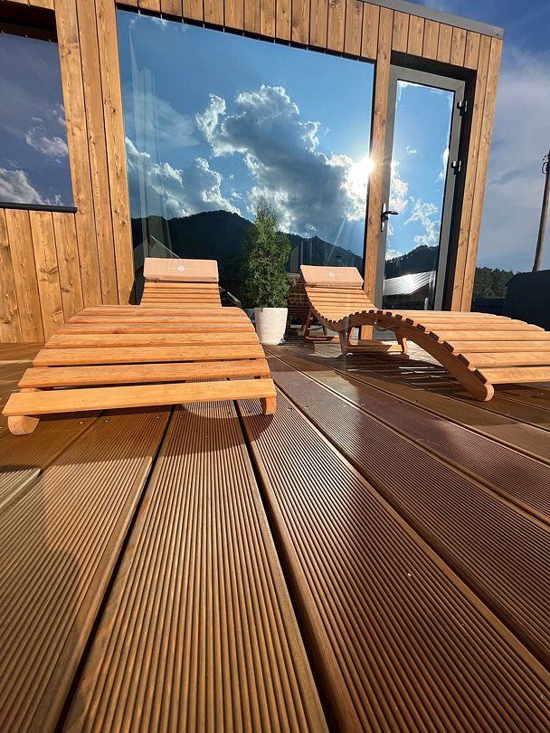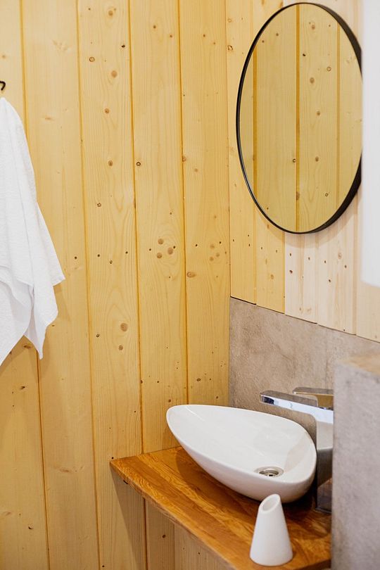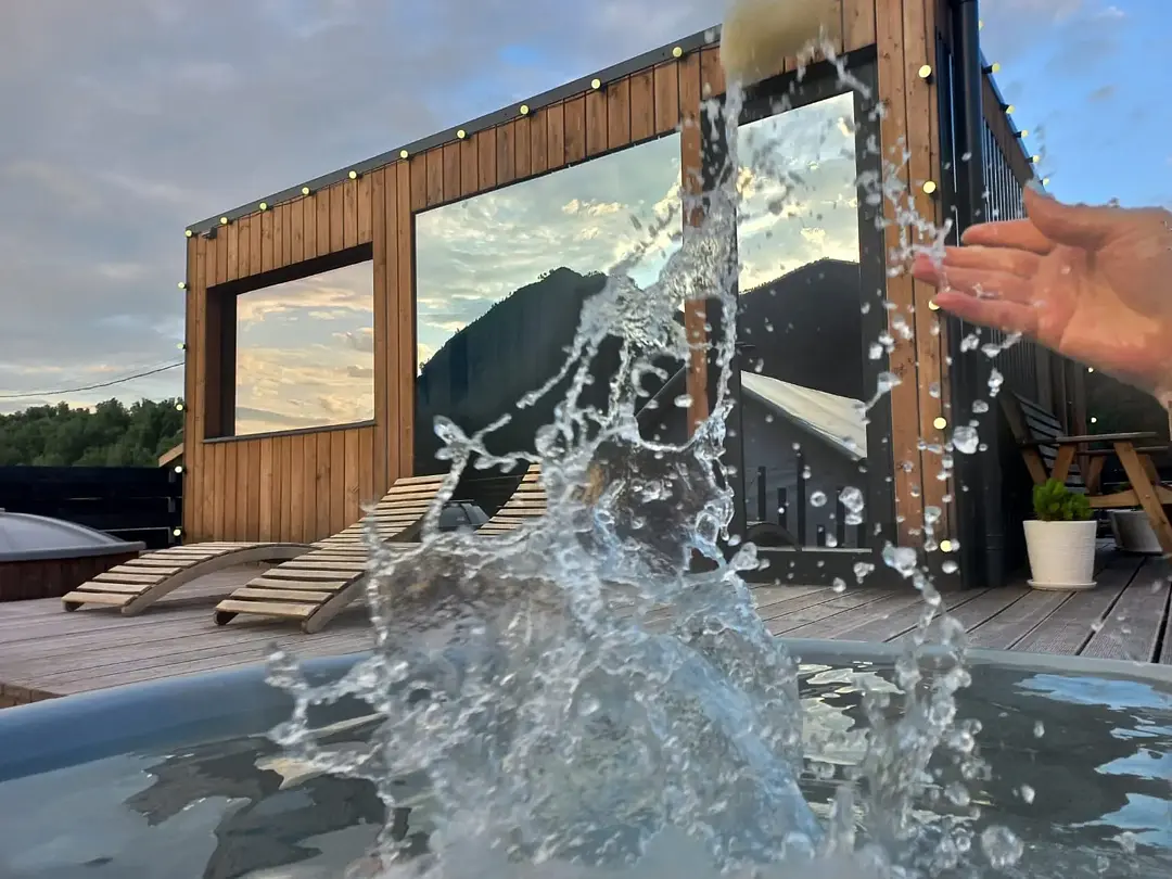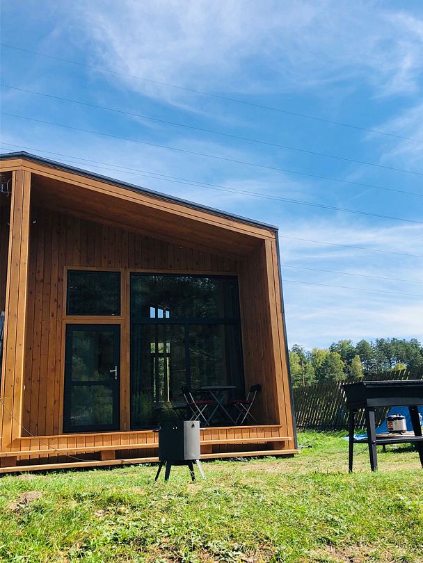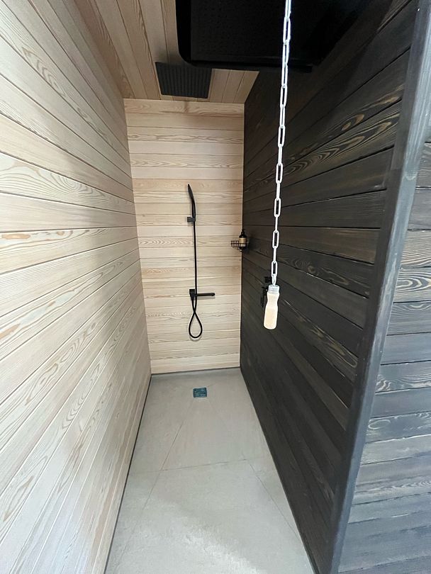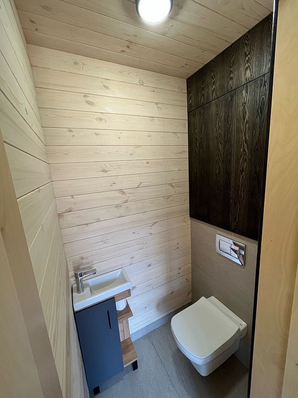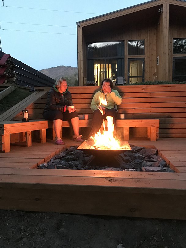Помимо удобств домика, расслабиться вам поможет баня и чан на открытом воздухе.