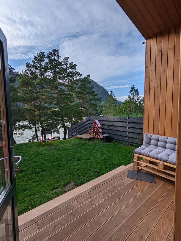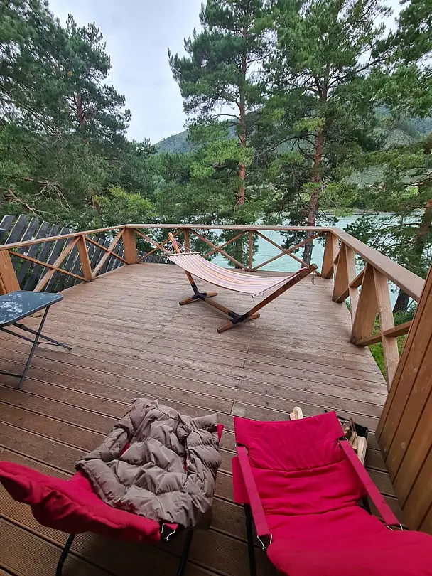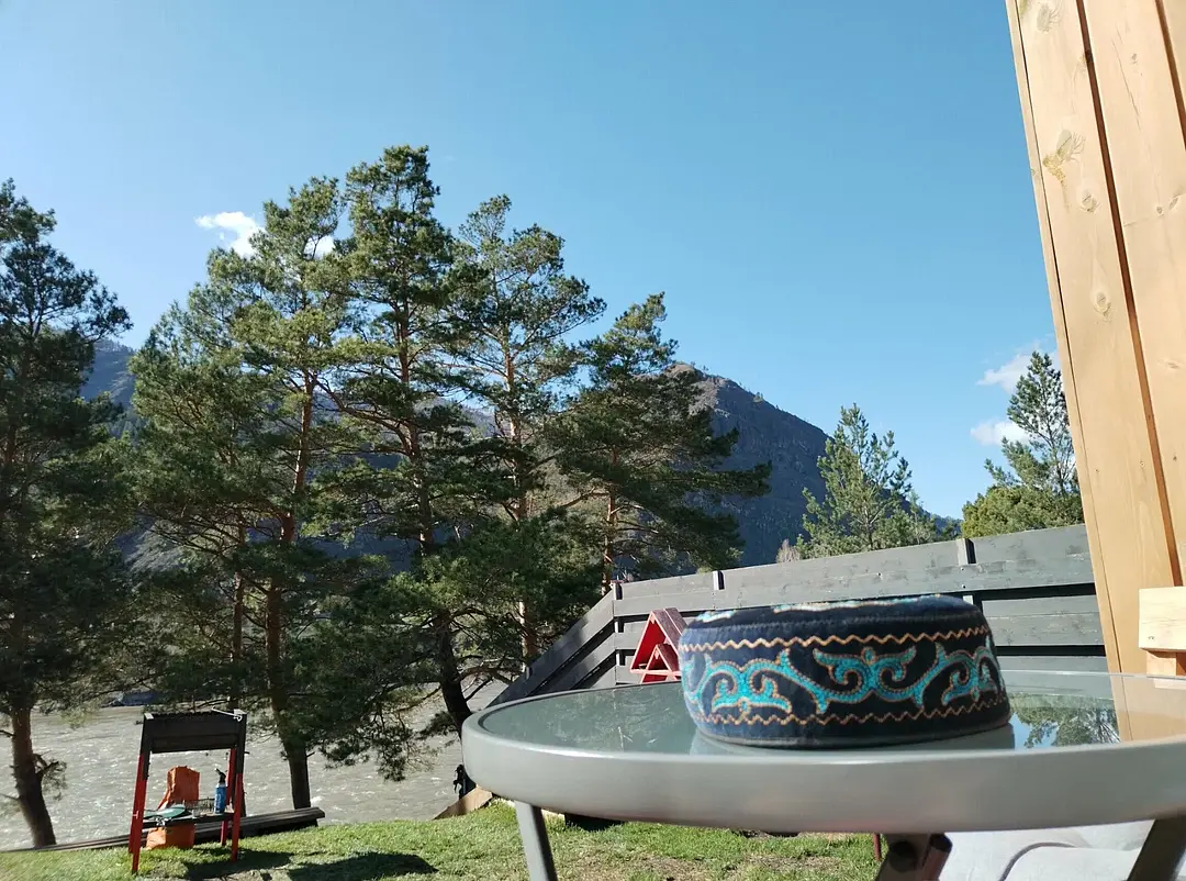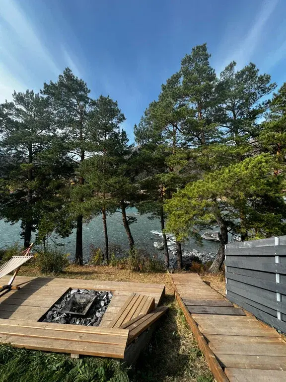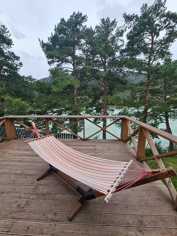 - терраса с видом на Катунь, столик и гамак для вашего отдыха.
