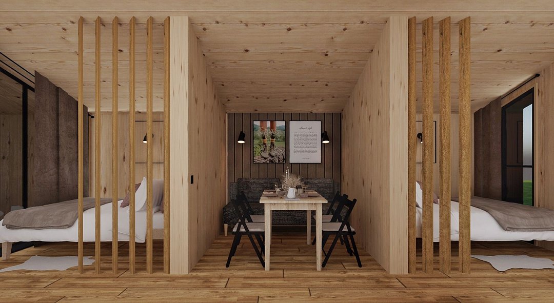 Стиль — скандинавский минимализм с акцентом на дерево и чистоту.