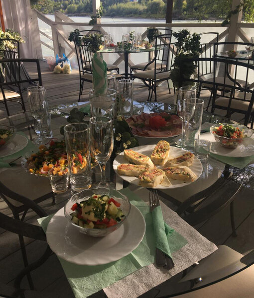 - банкетные залы с видом на строптивую Катунь, вместимостью 50 и 100 человек, на живописной территории туркомплекса;