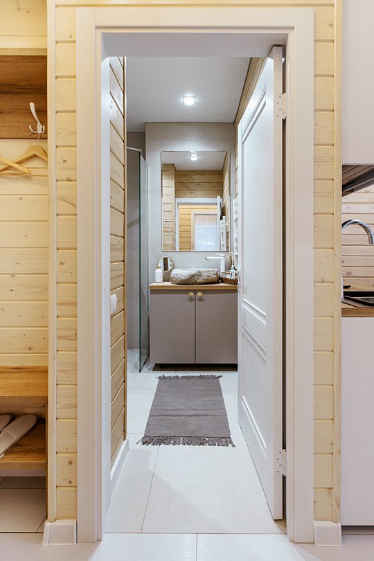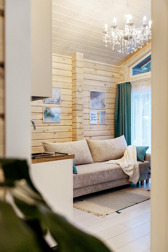 Стильный, деревянный шале в светлых тонах с панорамными окнами с видом на лес подходит как для семейного отдыха, так и для дружеских встреч. Дом включает просторную гостиную и уютную спальню. Теплые полы установлены на всей территории дома. Телевизоры есть в каждой комнате. Кухня полностью оборудована бытовой техникой и посудой.