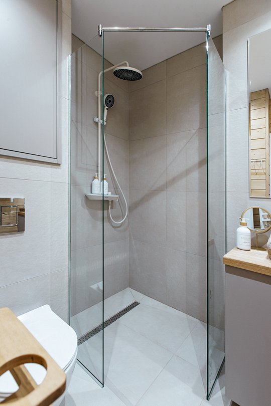 - инсталляция и душевой угол с тропическим душем;