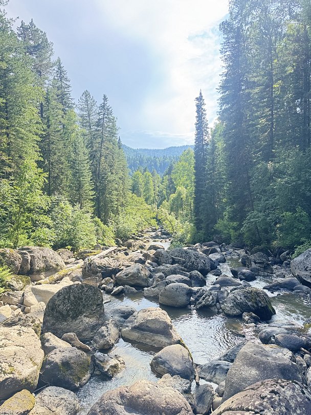 Представьте: высокие кедры шепчут на ветру, горная река Юрток звенит по камням, а вокруг — только лес, горы и безмятежность.