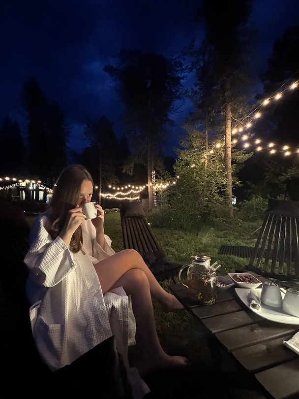 Банный чан расположен на территории комплекса в отдалении от жилых домов. Стоимость парения (3 часа / до 6 человек) — 7500 ₽.