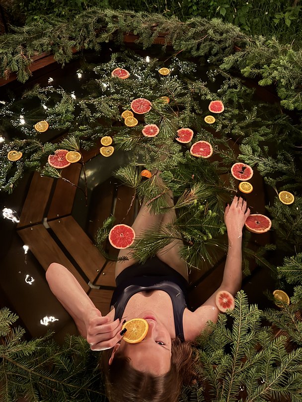 По желанию можно запарить еловые ветки и добавить аромамасла. Для аромата и красоты можно добавить цитрусовые (входит в стоимость).