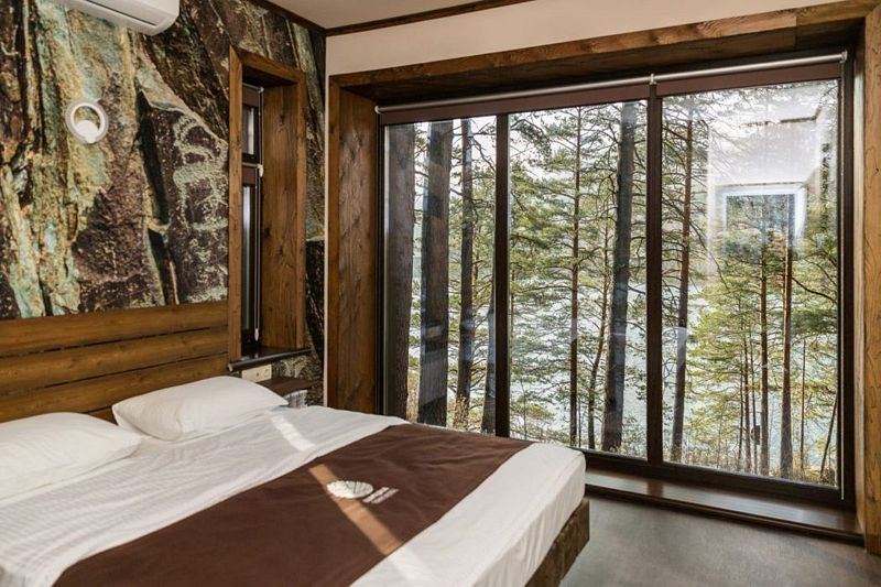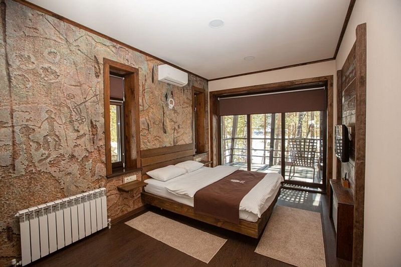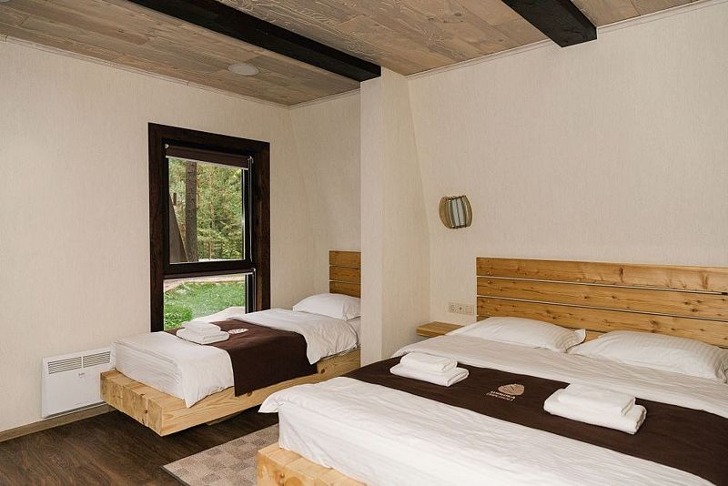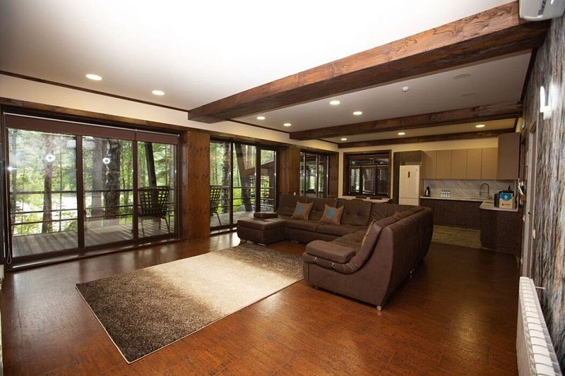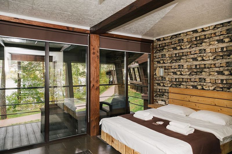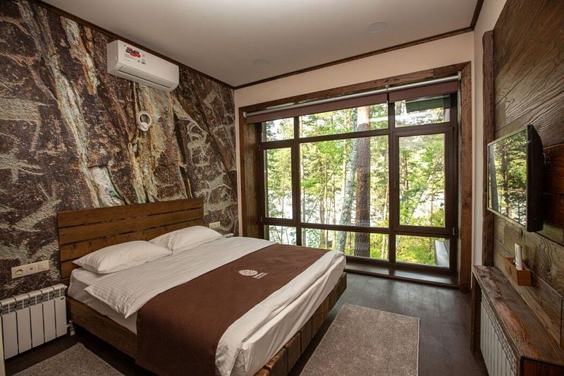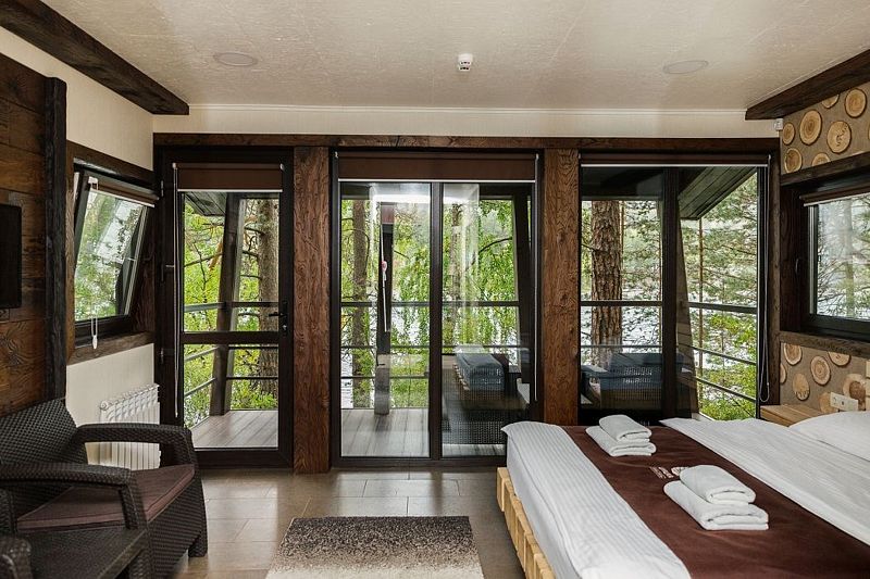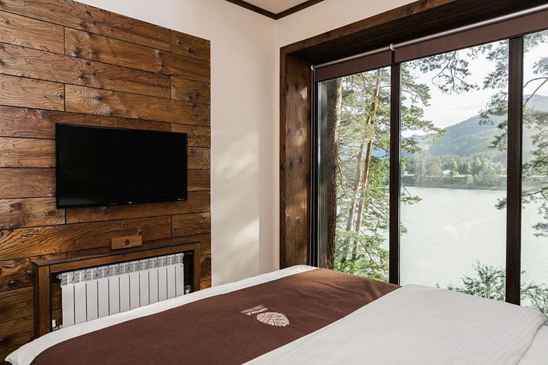 Для проживания предусмотрено 28 индивидуальных домов, выполненных в европейском стиле. В каждом доме имеется все необходимое для комфортного отдыха: удобные двуспальные кровати, телевизор, кондиционер, сейф, микроволновая печь, чайник и комплект посуды. Ванная комната с душевой, предоставляются ванные принадлежности, полотенца, тапочки, фен. При необходимости дома отапливаются, установлены полы с подогревом. Все дома имеют панорамные окна и террасу с видом на реку и горы. Рядом с каждый домом оборудована беседка и персональная мангальная зона.