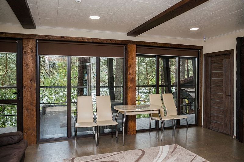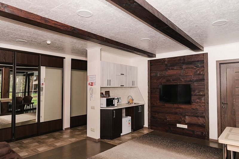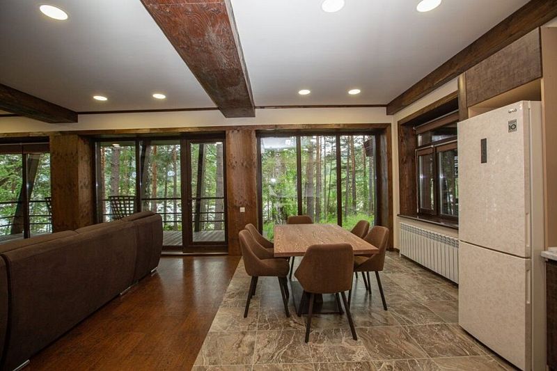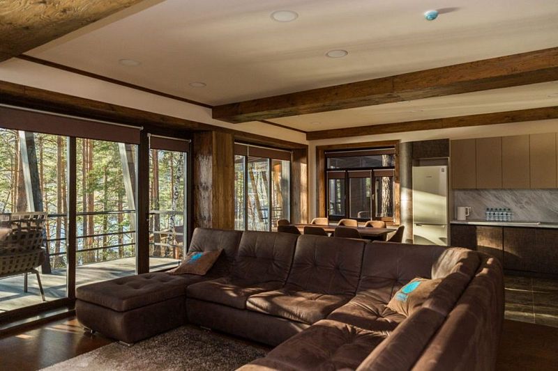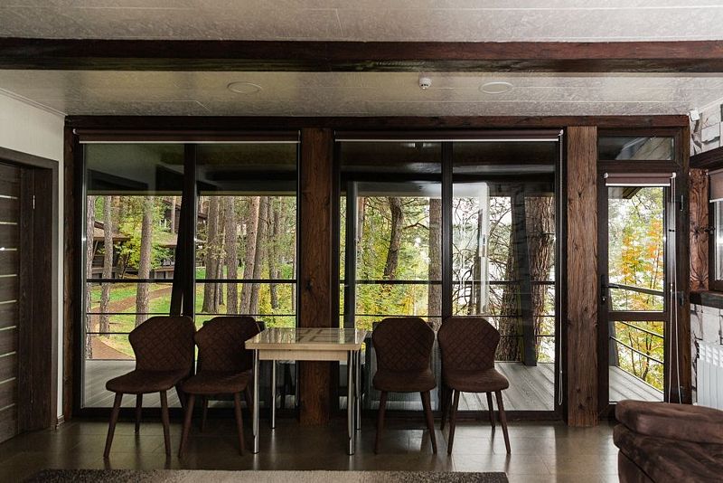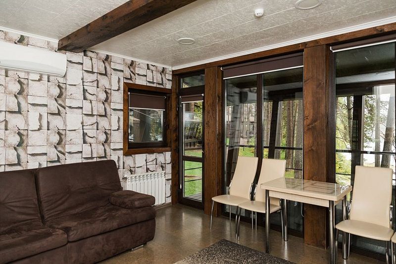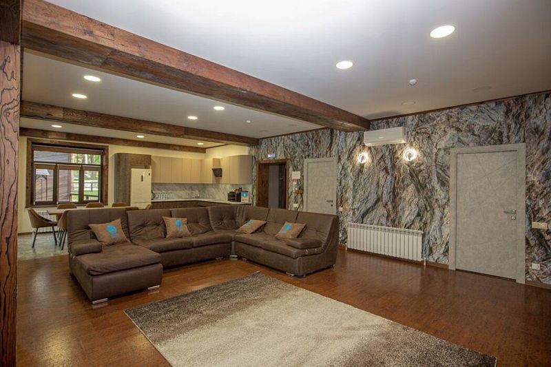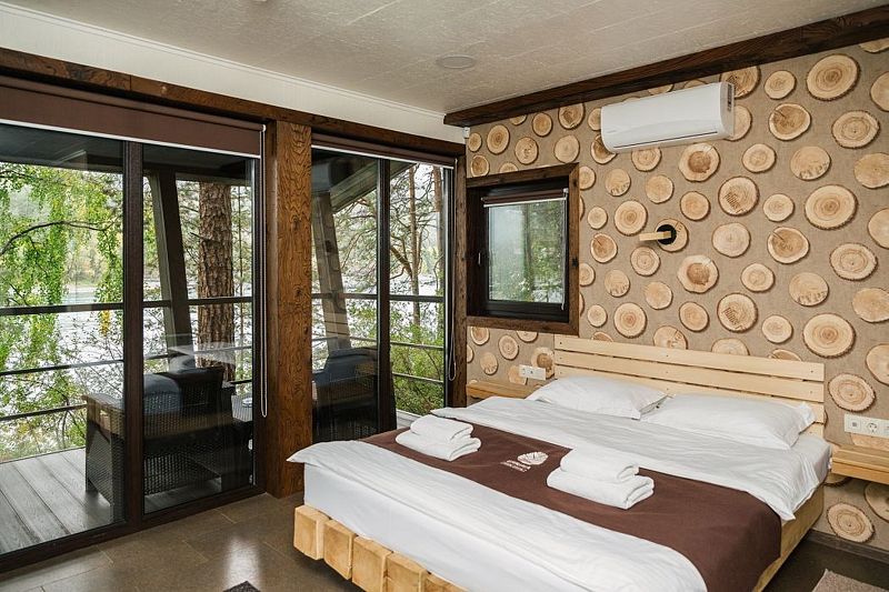 Для проживания предусмотрено 28 индивидуальных домов, выполненных в европейском стиле. В каждом доме имеется все необходимое для комфортного отдыха: удобные двуспальные кровати, телевизор, кондиционер, сейф, микроволновая печь, чайник и комплект посуды. Ванная комната с душевой, предоставляются ванные принадлежности, полотенца, тапочки, фен. При необходимости дома отапливаются, установлены полы с подогревом. Все дома имеют панорамные окна и террасу с видом на реку и горы. Рядом с каждый домом оборудована беседка и персональная мангальная зона.