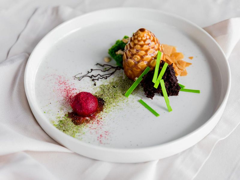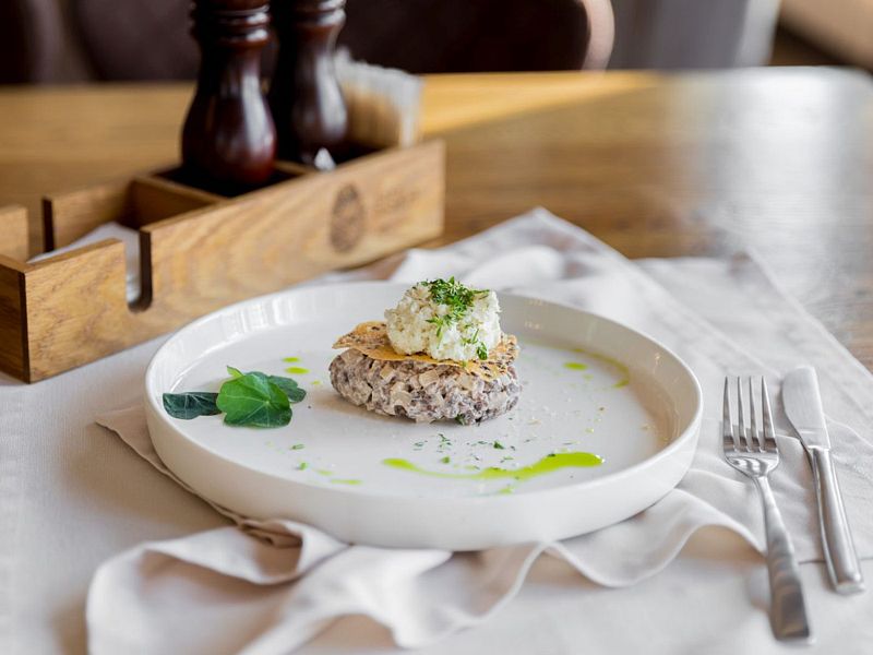 В распоряжении гостей панорамный ресторан ŠiŠKA, цветовая гамма которого выполнена в натуральных природных оттенках камня и коричневого дерева. Из панорамных окон открывается прекрасный вид на горную реку Катунь и территорию отеля. В основе меню – молекулярная кухня в сочетании с нестандартными вкусовыми подходами. В приготовлении блюд используются преимущественно локальные продукты Горного Алтая, такие как алтайская говядина, оленина, утка, грибы, местные сыры, высокогорный мед. Для юных путешественников предлагается специальное детское меню.