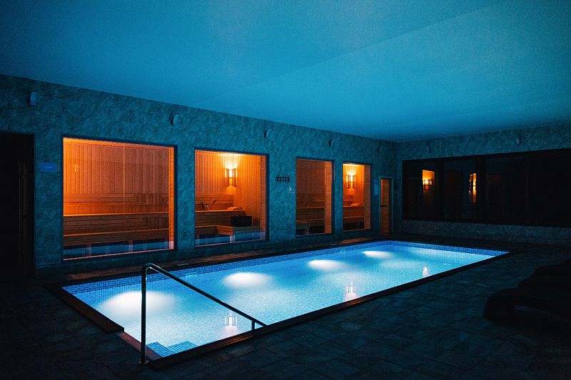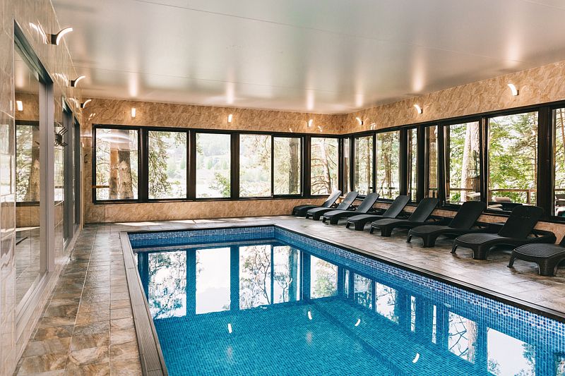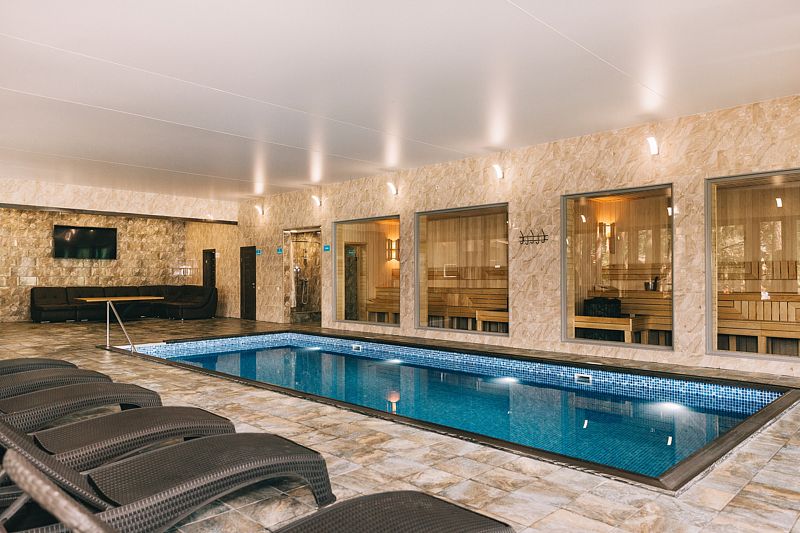 Тип бассейна: крытый бассейнРядом с бассейном: шезлонгиТемпература в бассейне: 27 °CРазмеры: 4 x 10 мБеседка