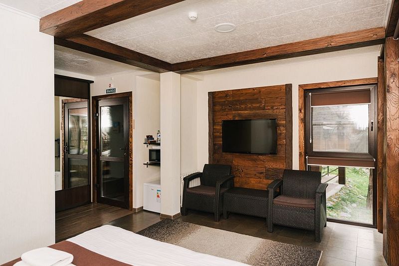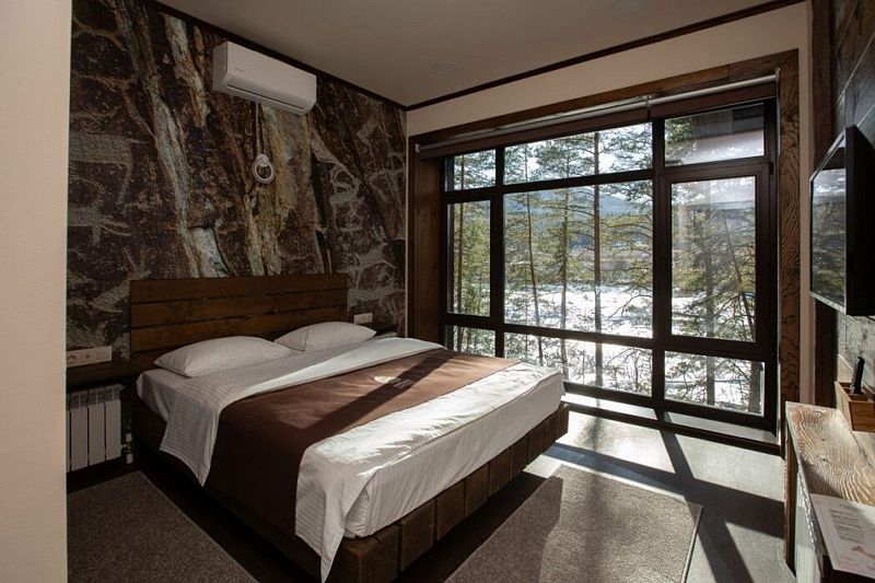 Путешествие с паройЗимний отпуск может быть прекраснымМы отдыхали в отеле 8 дней. Самый большой плюс - отдельный домик, где ты находишься в уединении (фото можно посмотреть в 2гис по интересующим номерам, они соответствуют реальности, все новое, чистое, приятное). Это было основным критерием при выборе. Территория небольшая, но уютная. Мы попали в период обильного снегопада, дорожки были расчищены, лестницы, мангальная зона тоже поддерживаются в порядке и чистоте. Сотрудники, в целом, расторопные, запросы решают очень быстро. Девчата на ресепшн отзывчивые, клиентоориентированы, предложили нам оплату разделить на две части, чтобы получить кешбэк, очень приятно получилось. Завтраки - это вообще моя любовь. Очень вкусно, я с удовольствием шла с утра в ресторан, где открывался прекрасный вид на горы. Официанты молодцы. Шустрые, живые и с улыбкой.