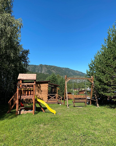 Помимо основного дома на территории есть ещё три домика, которые работают с мая по сентябрь. Также есть две беседки, бассейн (только в летнее время), баня, детская площадка и мангалы.