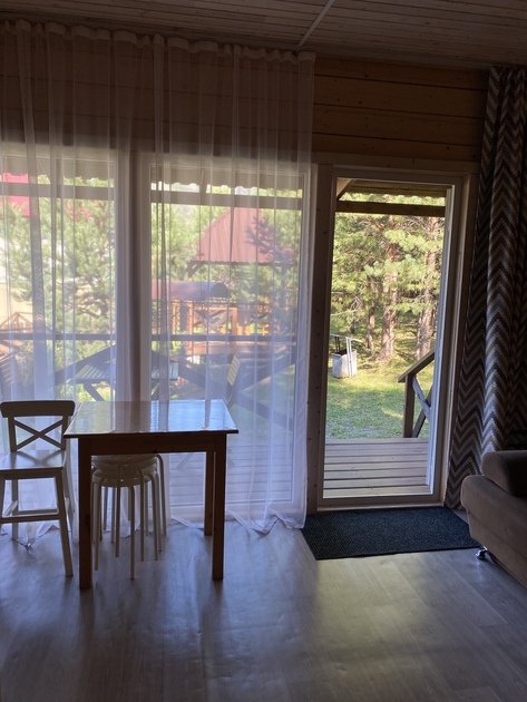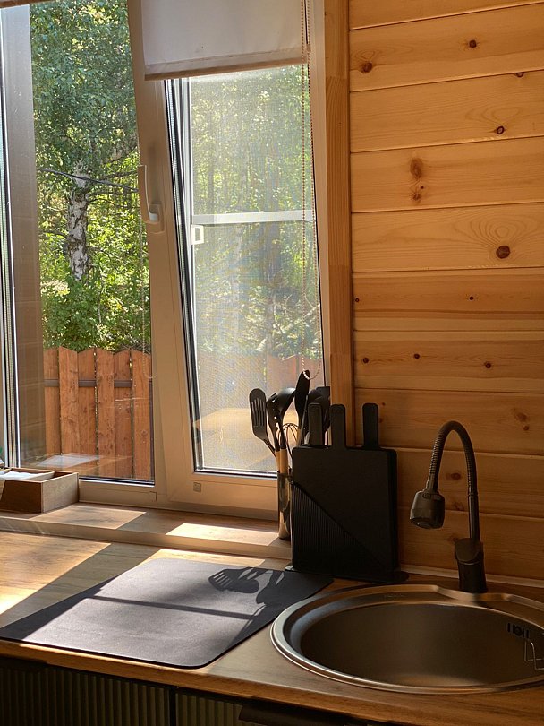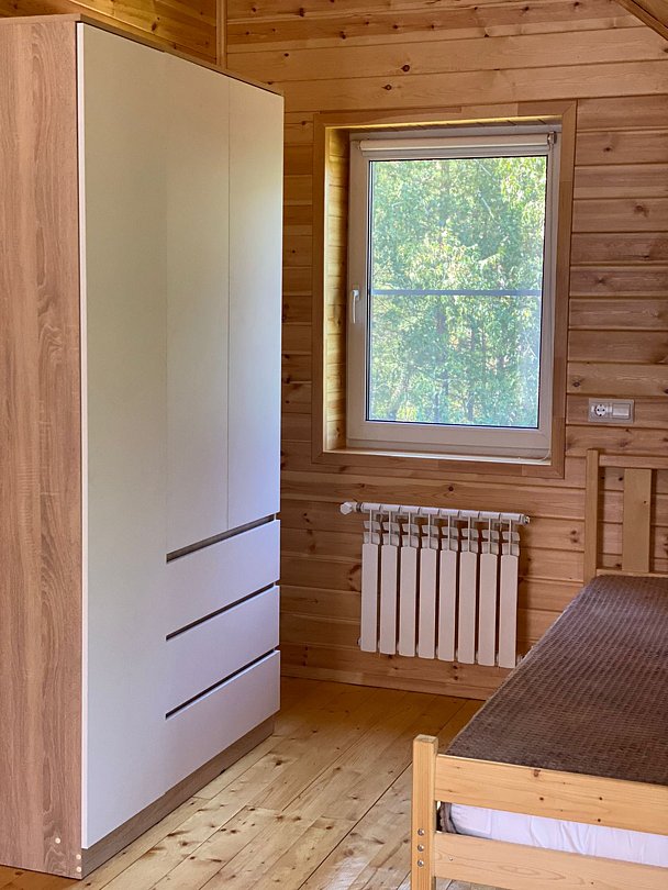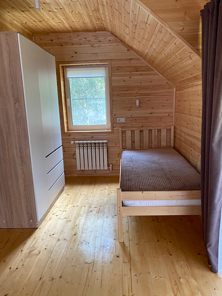 С августа 2024 года дом с сауной начал принимать гостей. В осенью и зимой он работает один на базе отдыха поэтому, если вы захотите отдохнуть в этот период на базе отдыха «Шишкин лес», то будете на территории одни.