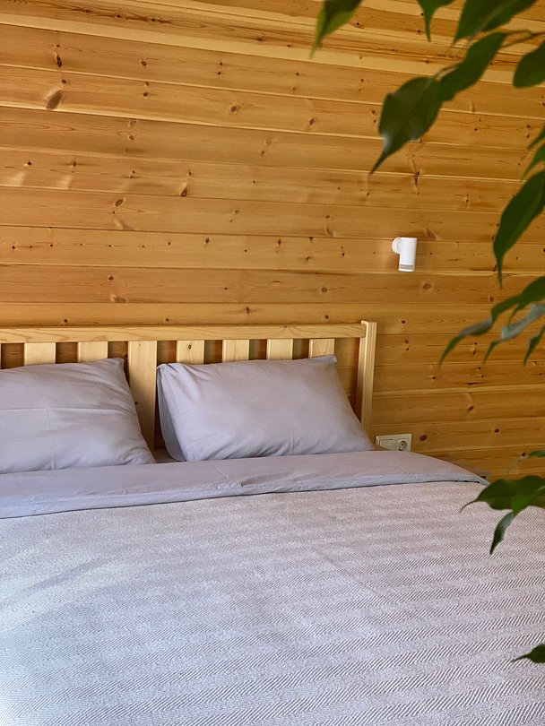 Есть сауна, которую нужно растапливать самостоятельно (одна охапка дров включена в стоимость), примерное время нагрева — 45 минут. Предоставляются шапки и простыни. Рядом с сауной есть ведро с холодной водой для обливания.