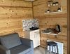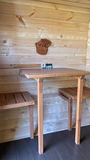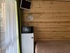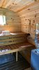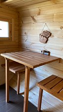 Максимальная вместимость домика: три человека. Идеально подойдет для двух человек или семейной пары с ребенком. Площадь домика составляет тринадцать квадратных метров. Домик полностью утеплен.