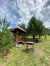У дома своя большая терраса со столом и двумя лавочками. Мангальная зона с решеткой и шампурами. Уголь и розжиг приобретается гостями.