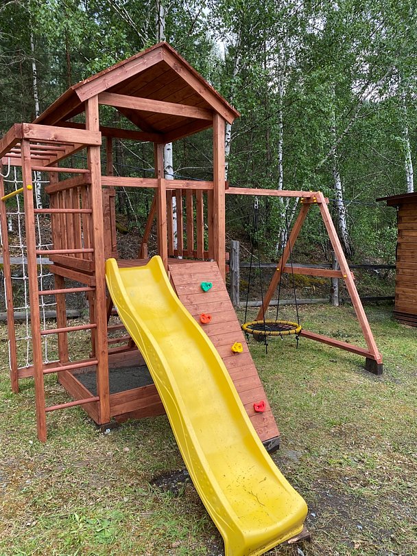 Гости могут расслабиться в сауне или квадро-бане, наслаждаясь паром. В летний сезон можно освежиться в бассейне, а для юных посетителей предусмотрена детская площадка с качелями. На территории также есть беседки и мангалы, где можно приготовить барбекю. Благодаря Wi-Fi можно оставаться на связи, не покидая уютного пространства.
