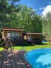 На террасе находится набор мебели: стол, два стула. На территории расположены мангалы, баня, качели, бассейн в летнее время, детская площадка, Wi-Fi.