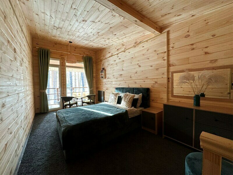 Максимальное количество натуральных материалов в интерьере. Шкура настоящего медведя и лося.