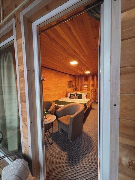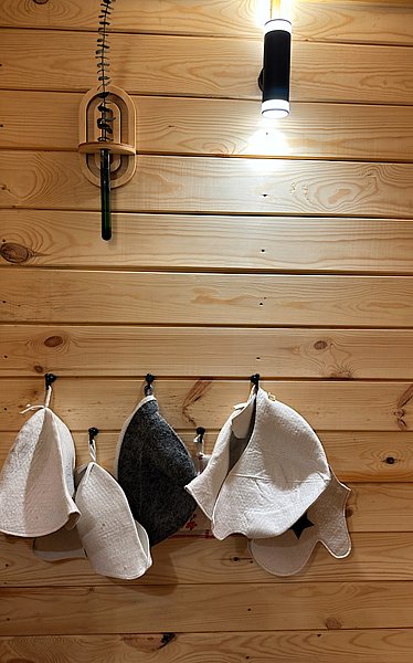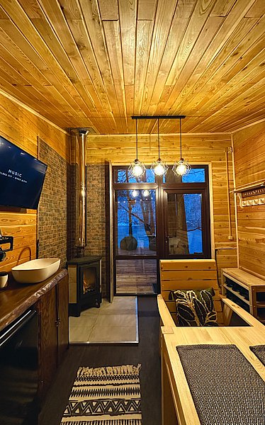 Кедровая фитобочка (парение с аромафитосбором алтайских трав) находится в банном комплексе.