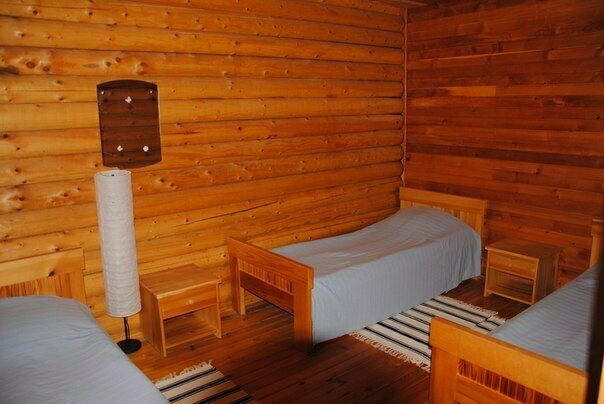 две односпальные кровати, двуспальная кровать, стол, с/у на этаже, душ на территории.