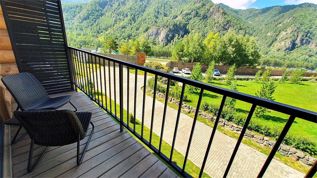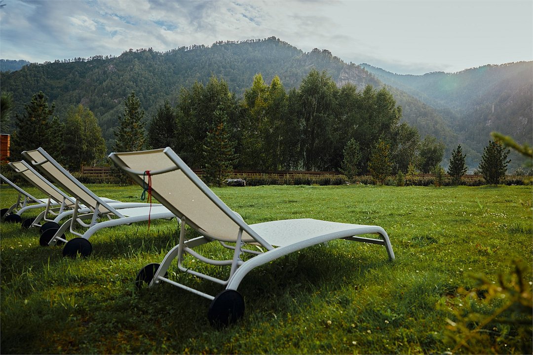 Короткий отпуск с друзьямиЗамечательное место отдыхаХочу высказать свою искреннюю благодарность этому замечательному месту отдыха. Во-первых, само место очень живописное и красивое. Мы жили в сафари-тенте (глэмпинге) на берегу Катуни, впечатления незабываемые и ни на что не похожие! Тент очень просторный, с большой террасой, а внутри полный комфорт уровня первоклассного отеля. Глэмпинг смотрит прямо на Катунь и горы, вид просто обалденный! Горячие завтраки нам привозили прямо на террасу. И ландшафт, и внутреннее убранство тента и гостиницы, и территория отеля - всё обустроено очень красиво, со вкусом, и с уважением к Алтаю и к его природе. Персонал очень внимательный и вежливый. Особенно хочется поблагодарить хозяйку и хранительницу этого чудесного места Елену за внимательное чуткое отношение и любовь к своим гостям! В ресторане было всё очень вкусно, меню изысканное и разнообразное, в общем, всё на очень высоком уровне. Произвели впечатление красивые интерьеры ресторана и гостиницы, обширнейшая библиотека, уютные лаунж-зоны. Еще что понравилось: "своя" тропа в горы прямо от отеля с живописными смотровыми площадками и местами отдыха, и удивительные горячие чаны с настоями трав, прямо на берегу Катуни. Т.е. это действительно был прекрасный отдых и полная перезагрузка! Это место, куда обязательно хочется вернуться, и не один раз.
